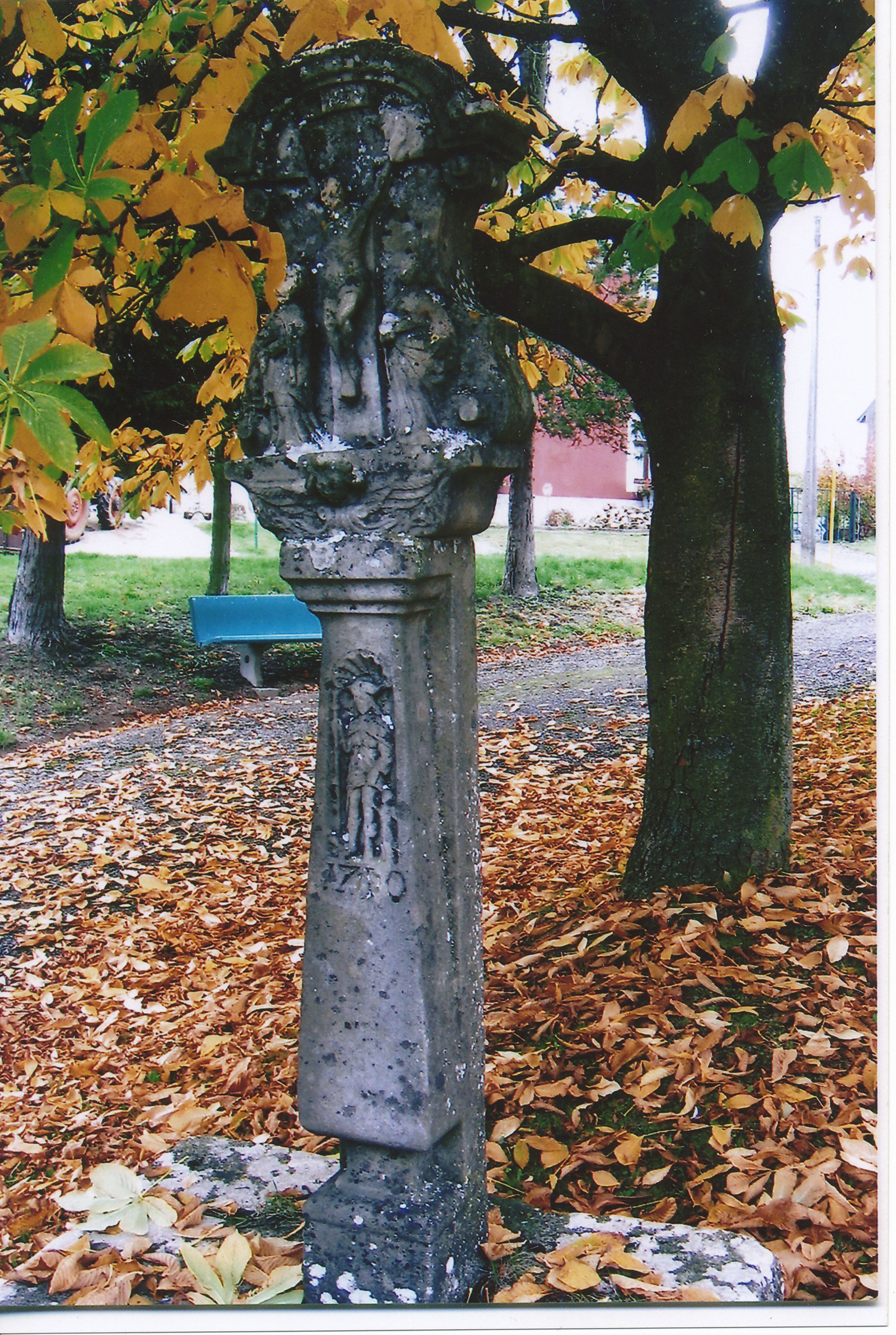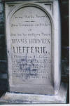 (3) RIGHT NEXT TO THE CHURCH ENTRANCE IS A TOMBSTONE WRITTEN IN GERMAN. THIS PROVES THAT GERMAN WAS SPOKEN IN HABERGY WHEN MATHIAS AND HENRY LIVED THERE. ENGLISH TRANSLATION: FOR THE DEVOUT MEMORY OF THE REVEREND JOANNES LUDOVICUS LIEFFERIT, PASTOR IN HABERGY. BORN IN NOHRESSART JUNE 24TH 1806, DIED IN HABERGY JANUARY 1871. YOU CAN FAINTLY RECONIZE A SWASTIKA IN DARK PAINT THAT WAS REMOVED. IT WAS PROBABLY PUT ON THE STONE AS AN INSULT DURING WWII BECAUSE IS HAS GERMAN WRITING.